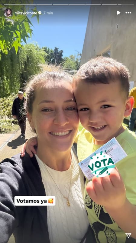 Otra de las famosas presentes en las urnas fue Mica Viciconte, quien fue acompañada de su hijo Luca, fruto de la relación con Fabián Cubero. “Votamos ya”, escribió junto a un emoji lleno de corazones.