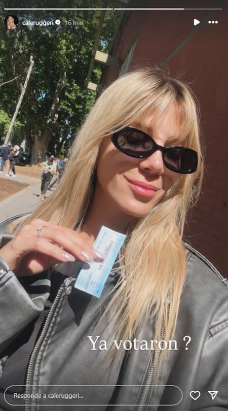 Horas más tarde, Cande Ruggeri se acercó a la escuela más cercana a votar y dejó la constancia en sus redes sociales. “¿Ya votaron?”, preguntó la modelo y conductora, luciendo su cabellera rubia suelta, unos grandes lentes negros y mostrando el comprobante oficial de voto con una gran sonrisa.