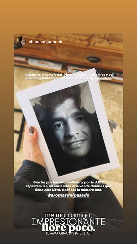 Además, recibió un sentido regalo de parte de una amiga: un diario con imágenes y recuadros del astro. “Puedo decir que este es uno de los regalos más lindo que me hicieron en la vida”, escribió al mostrar el libro. “Cada detalle, cada foto, un millón de recuerdos, un abrazo al corazón y al cielo!”, agregó.