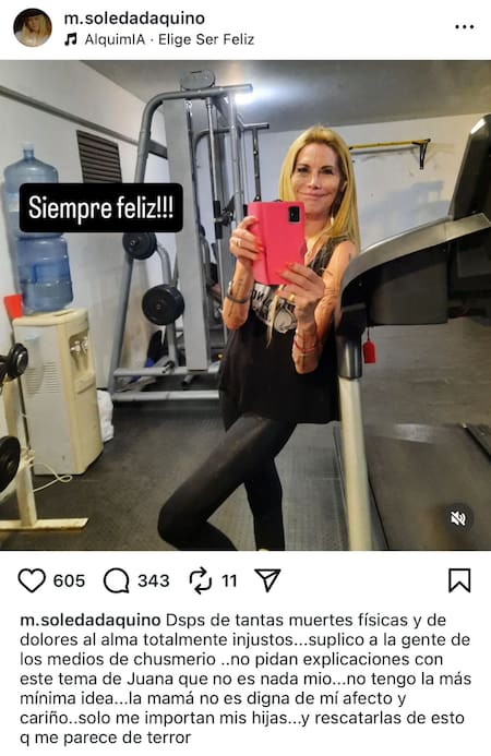 “Tras de tantas muertes físicas y de dolores al alma totalmente injustos, suplico a la gente de los medios de chusmerío: no pidan explicaciones con este tema de Juana, que no es nada mío… no tengo la más mínima idea. La mamá no es digna de mi afecto y cariño. Solo me importan mis hijas… y rescatarlas de esto que me parece de terror.”