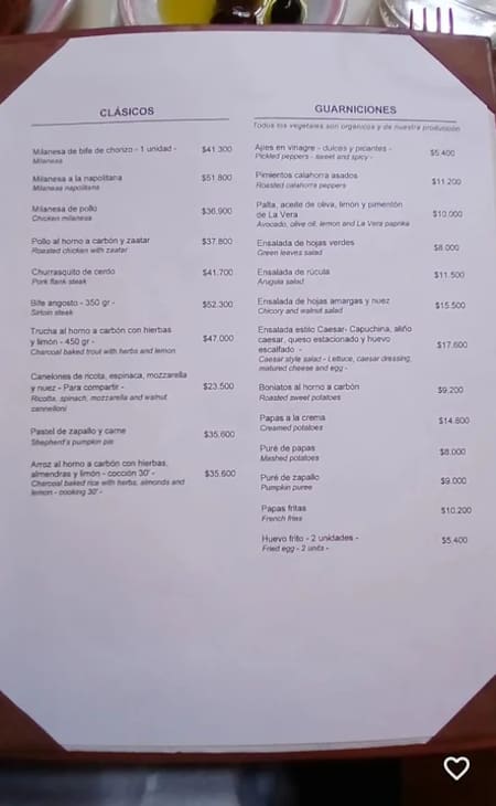 Los precios estimados del menú rondaban los $41.300 para la milanesa de bife de chorizo y $10.400 para la guarnición de papas fritas. A continuación, los precios de los platos que más salen: