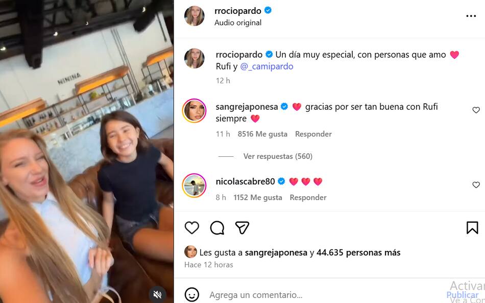 “Un día muy especial, con personas que amo”, escribió Pardo en el posteo junto a un video mostrando su vestido de novia y que estaba acompañada por la niña y su hermana. En ese posteo quedó en evidencia la buena relación que tiene con la China, quien comentó: “Gracias por ser tan buena con Rufi siempre”.