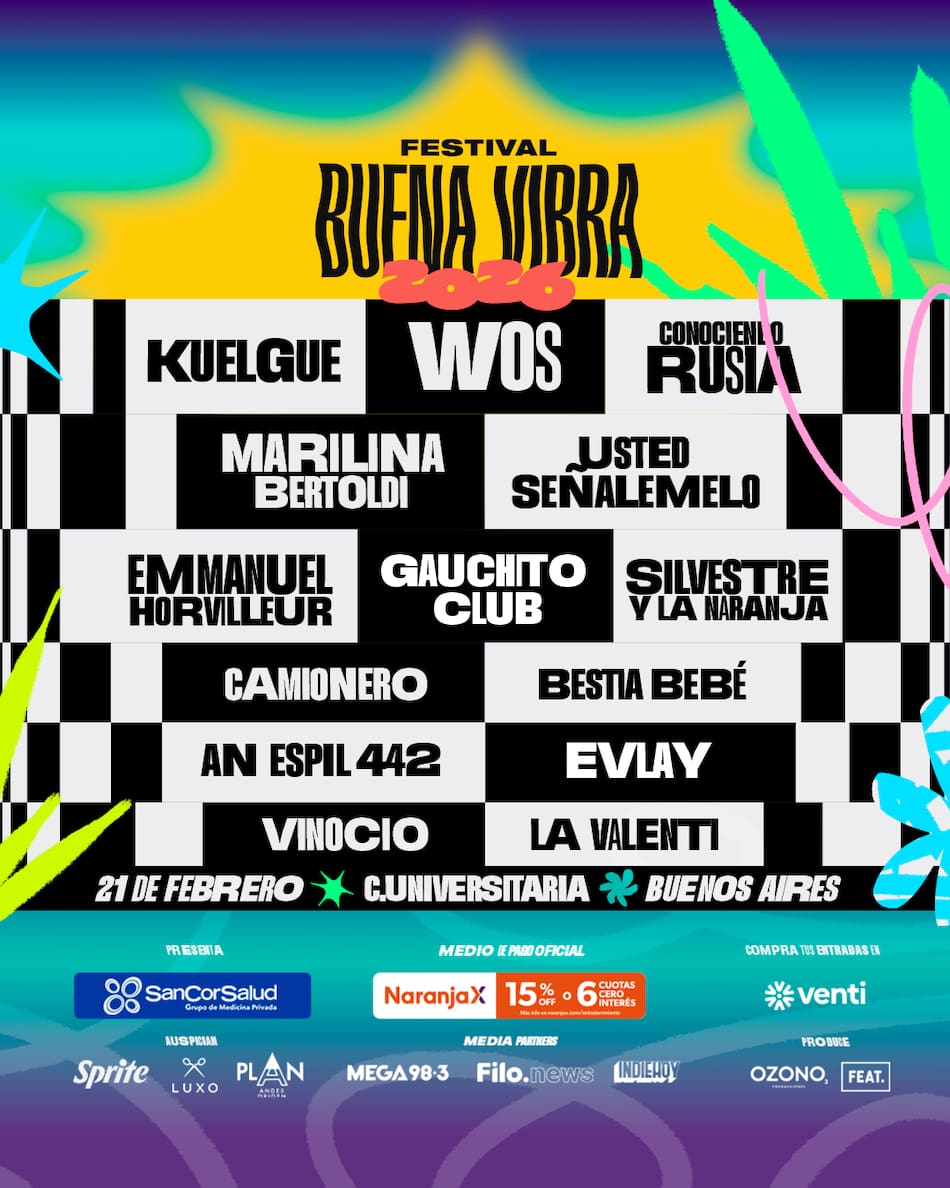 El Festival Buena Vibra anunció su edición 2026 a realizarse el 21 de febrero en Ciudad Universitaria. Entre sus artistas principales se encuentran Wos, El Kuelgue y Emmanuel Horvilleur y se supo el precio de las entradas, fecha del evento y la grilla completa que causó furor en la música.