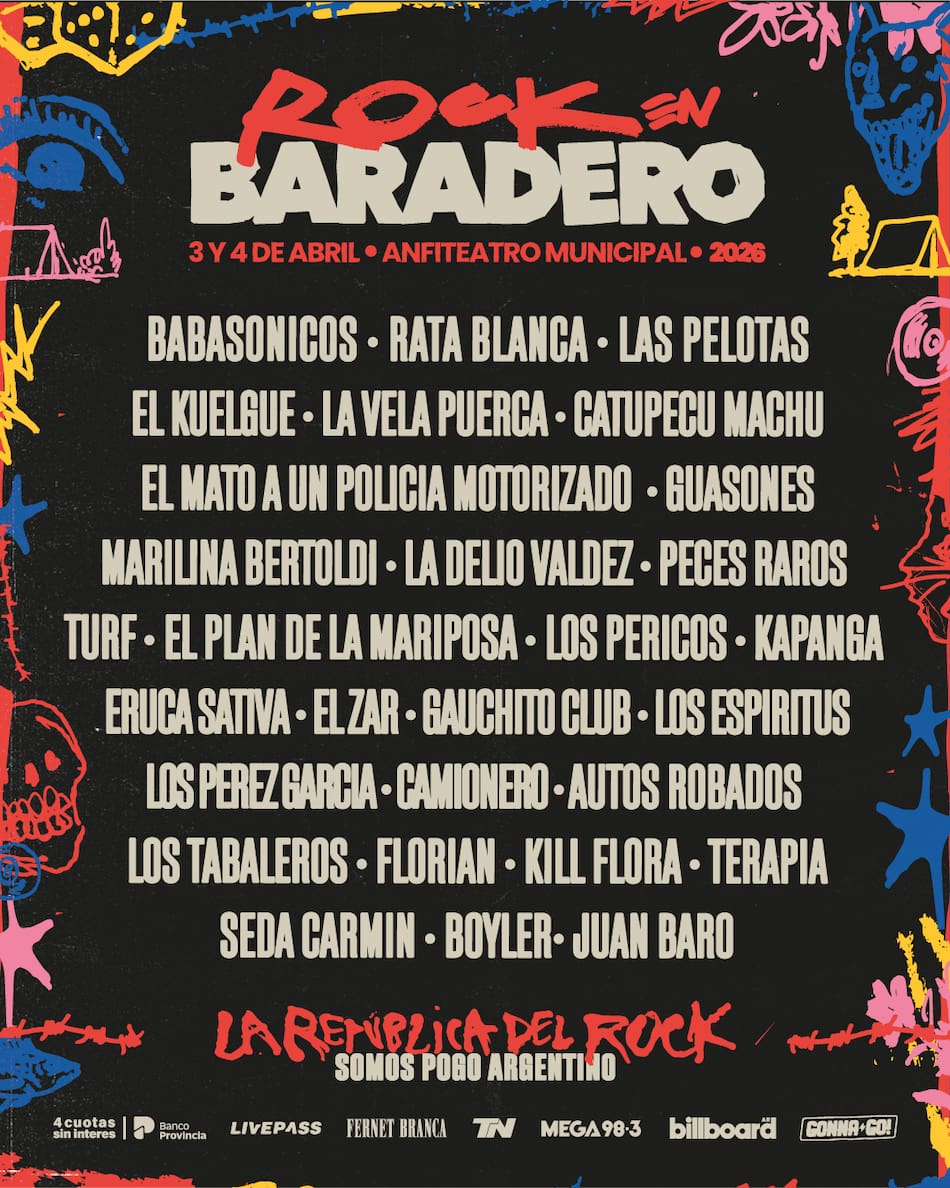 El festival de música Rock en Baradero anunció su line up de la edición 2026: será el 3 y 4 de abril en el Anfiteatro Municipal y presentará artistas de gran trayectoria como Babasónicos, Rata Blanca y Las Pelotas, además de artistas que están marcando la escena actual.