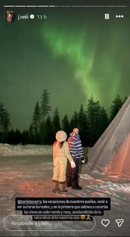 Este destino requiere de una planificación especial, ya que el invierno predomina el paisaje y las largas noches permiten observar uno de los fenómenos naturales más impresionantes del mundo. “Gracias Dios, gracias vida. Nuestro primer día en Finlandia y ya pudimos ver auroras”, escribió María en la foto compartida.