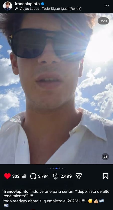 “Lindo verano para ser ahora un “deportista de alto rendimiento”. Todo readyyy, ahora si que empieza el 2026”, escribió Colapinto en un posteo acompañado por un carrusel de imágenes que resumían sus días de descanso en Argentina. Todas eran más o menos parecidas: entrenamientos, momentos de relax y escenas cotidianas marcaron la secuencia, hasta que una foto en particular captó toda la atención.