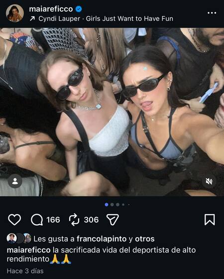 Hace apenas dos días, Reficco publicó una imagen en sus redes con la frase: “La sacrificada vida del deportista de alto rendimiento”, una descripción idéntica a la utilizada por Colapinto en su posteo.