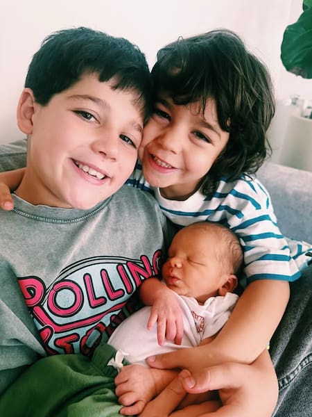 Allí, la publicación muestra a sus dos hijos mayores, Toribio y Belisario, sonriendo y sosteniendo con cuidado al pequeño Timo, felices de haber recibido a su hermanito menor. En las primeras fotos, se encuentran solo los niños, mientras que en la última, Juana se agrega a la postal familiar, fundiéndose en un abrazo. “Mi familia, mis bebos, mis tres hijos, mis hombrecitos, los amores de mi vida y mi vida entera en una foto”, expresó conmovida.