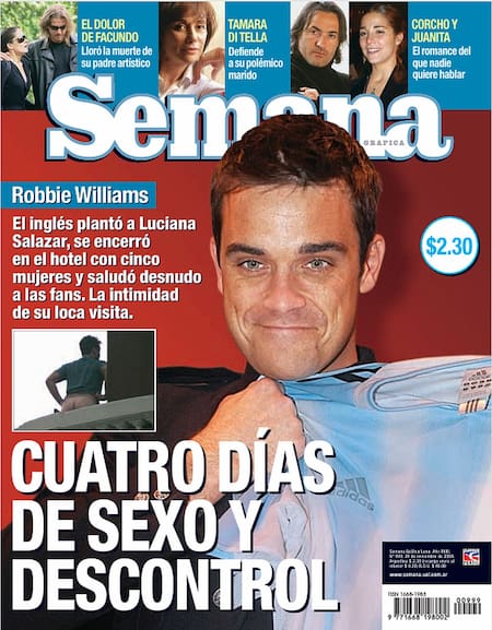 Robbie Williams, que acaba de anunciar un show en Argentina en octubre, visitó el país por primera vez en 2004, en una gira promocional que lo tuvo dando vueltas por los principales programas de TV y radio de ese momento, aunque la mayoría del tiempo lo pasó encerrado en la Mansión del hotel Four Seasons. A los 30 años, el artista recogía los frutos del éxito. Pasó cuatro días en Buenos Aires, prácticamente metido entre cuatro paredes del alojamiento, completamente cercado por las fans que lo acosaron constantemente. Pensaba ir a ver un partido River-Independiente, pero tuvo que verlo por TV. Para entretenerse visitaba el lobby del hotel y charlaba con los otros huéspedes.