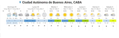 Además, según indicó elServicio Meteorológico Nacional (SMN), elpróximo martes sería el día más frío del año,con un cielo despejado, perocon temperaturas de 0 °Cen la capital y valores negativos en el Conurbano. Esto augura nuevas heladas matinales en varias zonas.