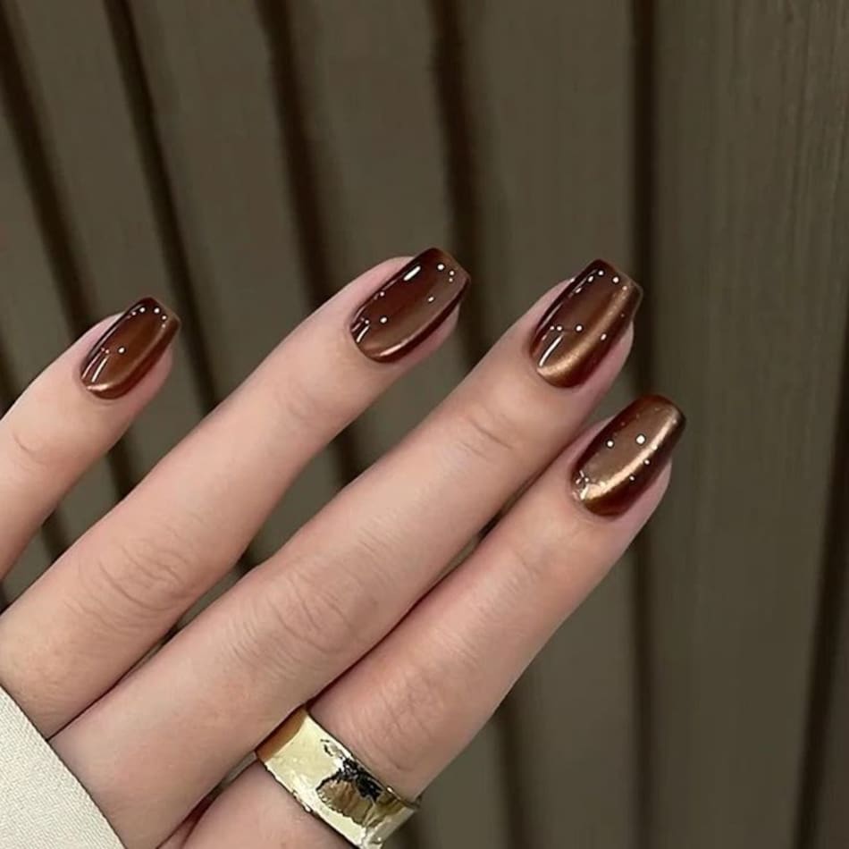 Con un aire nostálgico que remite a los años ‘90, este tono regresa con una estética renovada. Aporta calidez y un toque retro-chic, sobre todo en acabados mate o glossy. Combina perfectamente con anillos en tonos dorados o plateados, destacando la manicura con un efecto visual elegante.