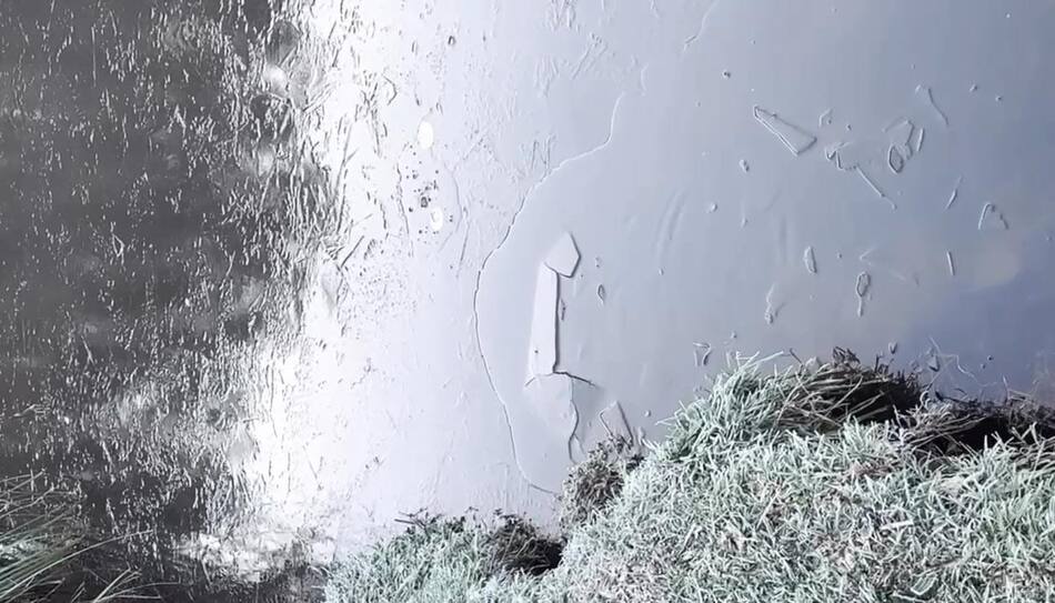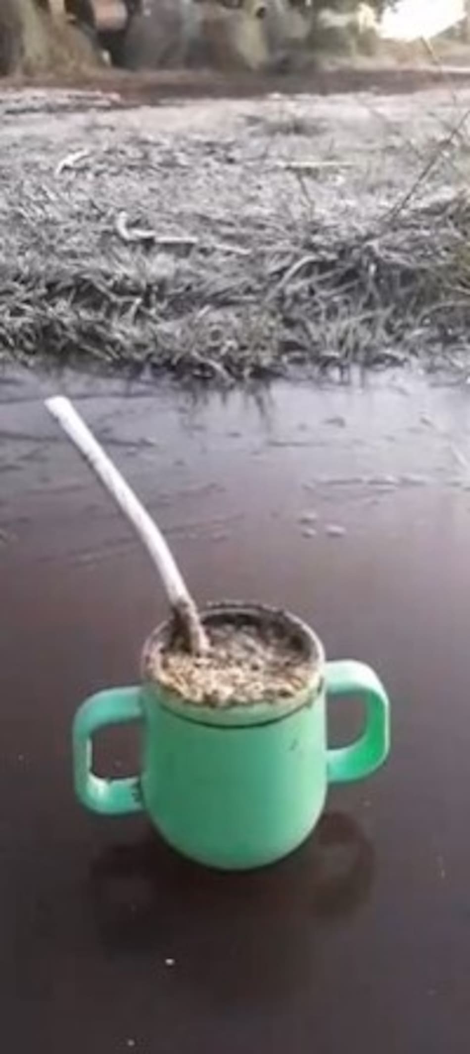En Rumencó, una familia se filmó junto a un lago cubierto de hielo y en Acantilados, un mate quedó sobre un charco helado en medio de un patio cubierto de un pasto que yacía blanco producto de la helada.