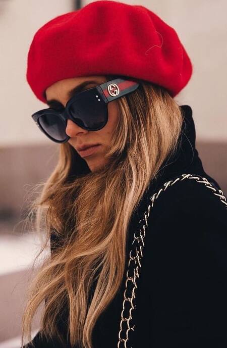 Para armar este look, necesitarás una boina de fieltro negro, ligeramente inclinada hacia un lado y con una pequeña hebilla plateada. Combinala con un tapado de paño color camel y un pantalón negro o gris oscuro. Este estilo se termina con unas buenas botas negras con taco medio y una bufanda en tonos neutros. ¡No olvides los lentes de sol!