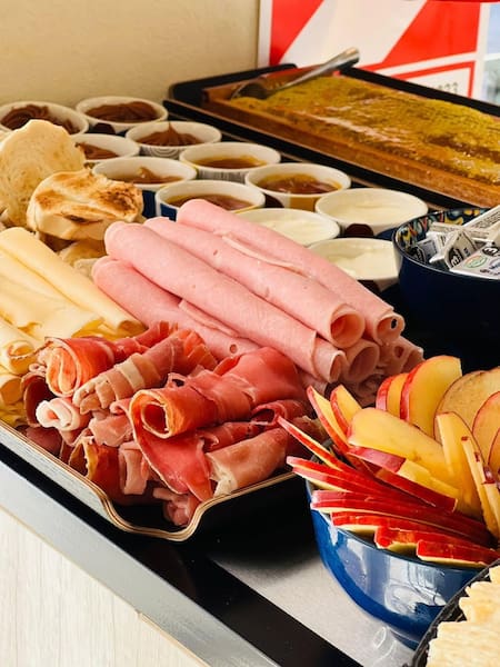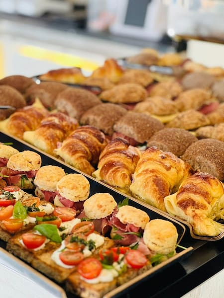 Las opciones saladas abarcan todo tipo de fiambres, medialunas rellenas, fosforitos, sandwiches de salamin y queso con pan de chipá, minihamburguesas y sandwiches de crudo y queso en pan negro, entre otros.
