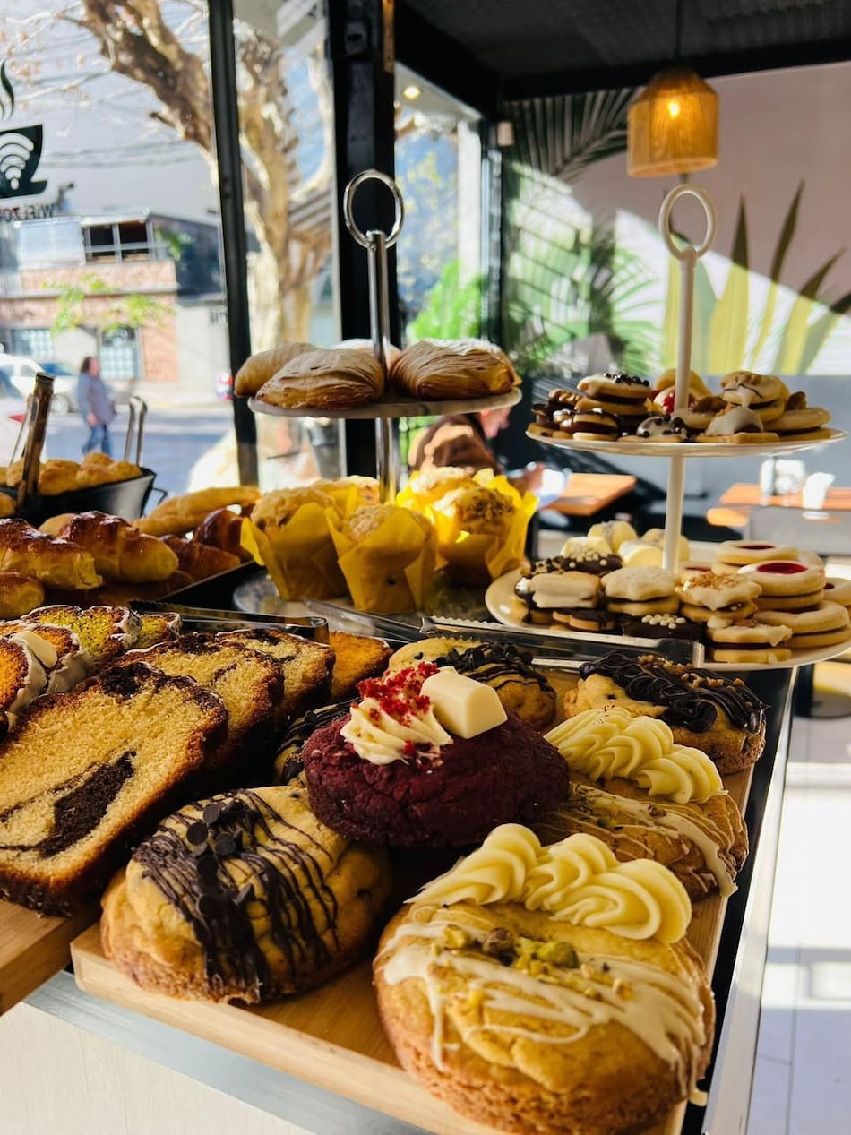En tanto lo dulce incluye, por ejemplo, facturas, bolas de fraile, budines, masas secas, alfajores, chocotorta, yogur con granola y frutillas y numerosas tartas.