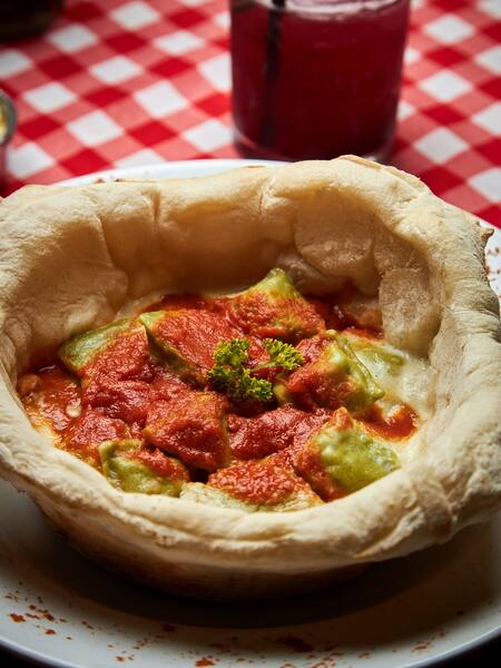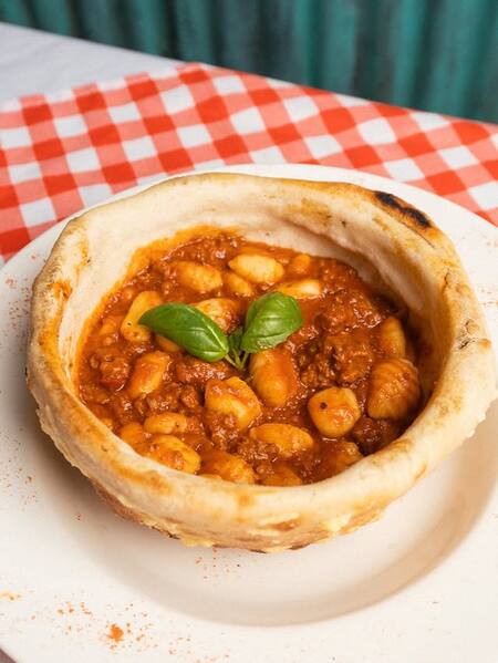 Un bodegón brilla por servir las pastas en un volcán de masa de pizza: dónde queda