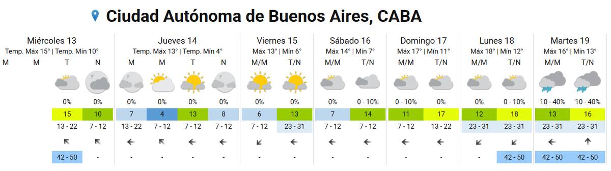 El frío seguirá sobre la Ciudad de Buenos Aires, con una variación de entre 11°C y 17°C en el termómetro. El cielo estará mayormente nublado, por lo que habrá pocas chances de disfrutar de un agradable día al aire libre.