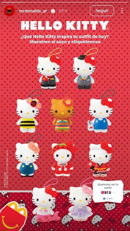 El anuncio se difundió a través de las plataformas oficiales de la cadena, con un mensaje directo a los seguidores de la marca: “¡El mundo de #HelloKitty llegó a #CajitaFeliz! Pónganse su mejor outfit…”. La campaña, con una fuerte impronta “kawaii” (el estilo tierno y colorido característico de la cultura pop japonesa), apela tanto al público infantil como a coleccionistas adultos que crecieron con el personaje.