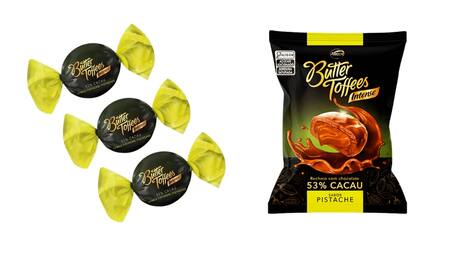 El lanzamiento oficial se realizó en Brasil bajo el nombre Butter Toffees Intense 53% Cacau sabor Pistacho, pero los kioscos argentinos ya comenzaron a venderlos, anticipando una llegada oficial al mercado local en los próximos meses.