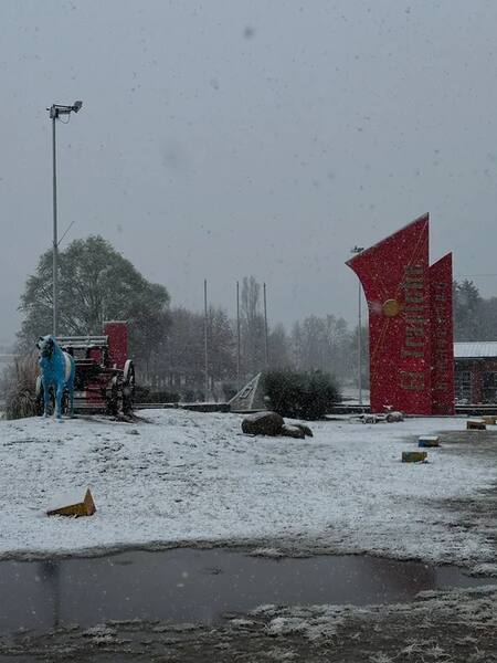 Incluso, la nieve llegó a la zona norte de la capital provincial, alcanzando la tercera rotonda, un hecho que sorprendió a los vecinos.