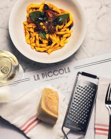 Como contó el perfil foodie @turistafoodie, el lugar es friendly y con onda. En La Piccola, la pasta casera hecha a mano es la estrella, y aunque la carta es acotada, sorprende por la cantidad de opciones vegan, veggie y gluten free, para que nadie se quede afuera.
