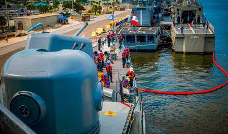 En la primera fase de navegación, los 229 tripulantes realizaron un intenso adiestramiento en el mar, incluyendo prácticas de roles de combate, abandono del buque, control de averías, lucha contra incendios, operaciones con helicópteros y ejercicios de Visita, Registro y Captura (VRC). Todas estas actividades estuvieron orientadas a fortalecer la preparación y seguridad operativa del personal a bordo.