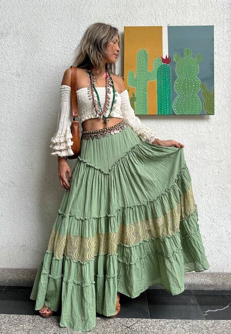 Estamos hablando de la falda boho, un recuerdo de los años ‘70 que regresa con una vuelta de tuerca mucho más moderna y reinventada, para adaptarla a los tiempos de hoy y combinarla con tops, zapatillas y hasta botas. Lo bueno de esta prenda, es que se vende en cualquier lado: desde ferias americanas, hasta oficinas relajadas y tiendas de ropa.