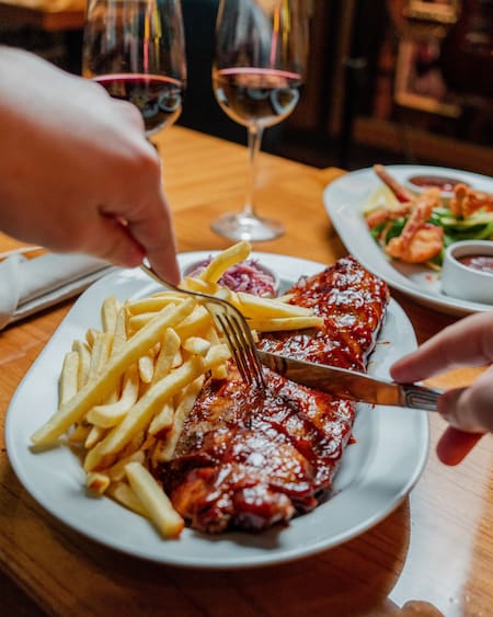 - Una pechuga de pollo grillada a la leña con papas rústicas: $22.400;