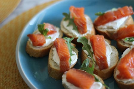 5. Mini bruschettas de salmón ahumado y queso crema