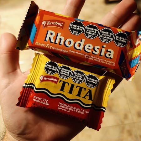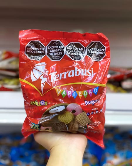 - Dos paquetes de galletitas tradicionales: uno de “Anillos Terrabusi” y otro de “Variedades Surtidas”.