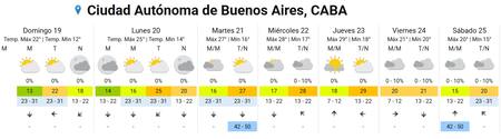 En cuanto a las temperaturas, se esperan marcas de entre 12 grados de mínima y 22 de máxima, por lo que tranquilamente se puede disfrutar de un almuerzo al aire libre.
