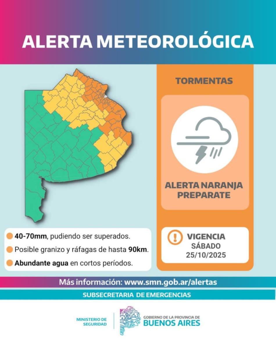 El Servicio Meteorológico Nacional (SMN) lanzó su pronóstico del clima para el inicio del fin de semana de las elecciones legislativas, el cual comenzará con alerta naranja y amarilla por lluvias y tormentas.