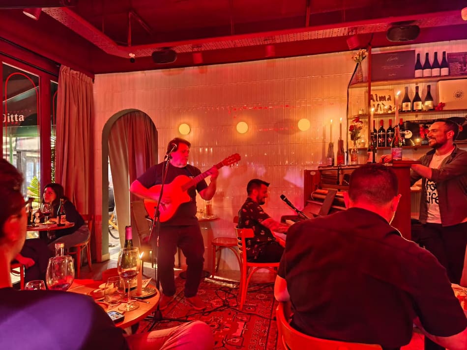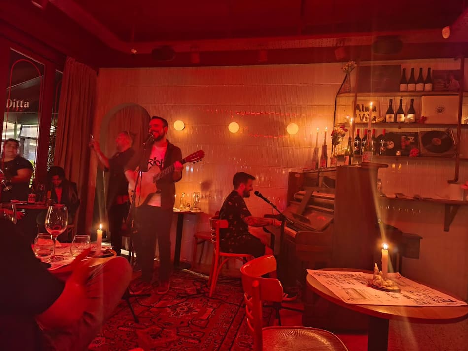 Con una carta al mejor estilo tapas de Madrid, un pianista y guitarrista acompañan toda la velada con un mix de temas que puede ir de Gilda a Ricky Martin sin escala.