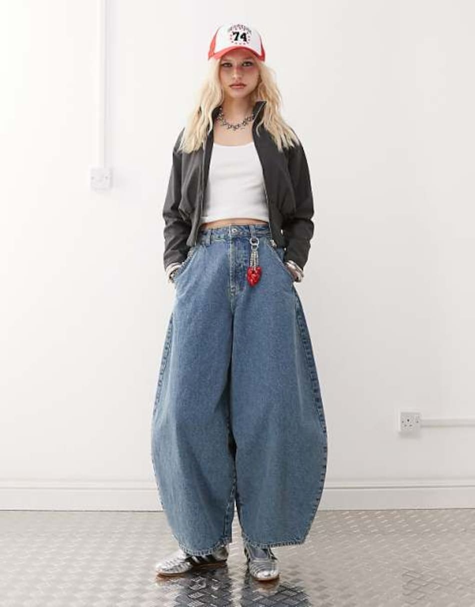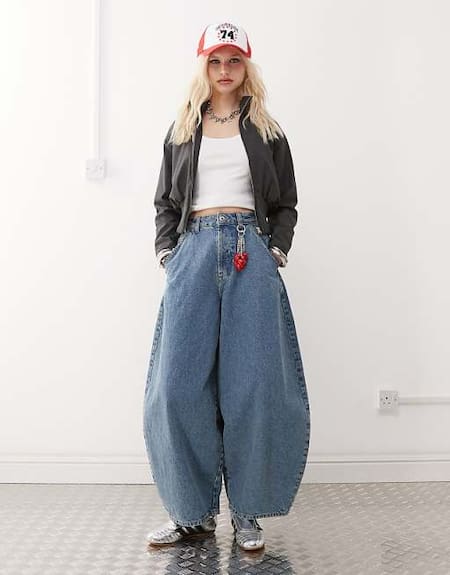 Este modelo de jean con forma redondeada y corte wide se impone como un básico de verano. Favorecen todo tipo de figura y aportan un aire relajado pero moderno. Se llevan con sandalias planas, zapatillas o tacos bajos, y aparecen en versiones de denim claro, blanco o gastado.