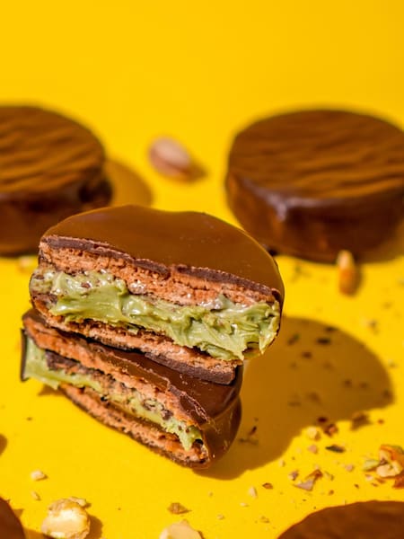 Estos alfajores cubanitos, llamados “Arbajor”, ofrecen una propuesta divertida y diferente que combina creatividad y sabor en cada bocado. Lo mejor de todo es que se destacan por su bajo precio. ¿Quién dijo que todo lo que tiene sabor a pistacho tiene que ser caro?