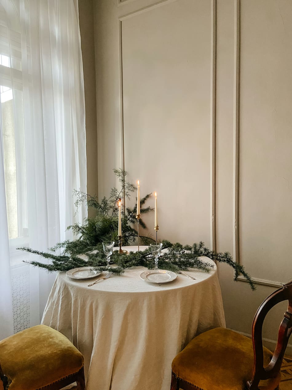 - Adornos: se pueden incorporar velas, guirnaldas, jarrones y todo tipo de objetos blancos, sin saturar la mesa.
