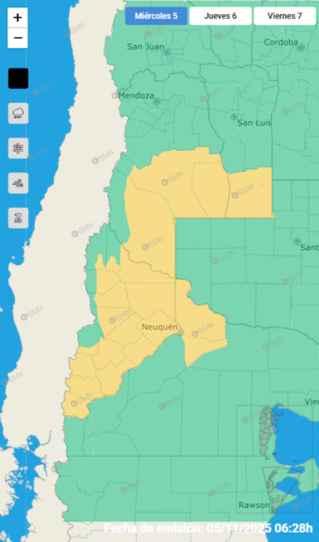 En detalle, las zonas afectadas son Mendoza, San Luis, Neuquén y Río Negro. Las previsiones son distintas para cada sector, aunque coinciden con la presencia de estos fenómenos que requerirán tomar algunos recaudos.