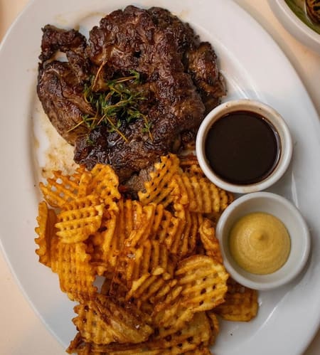 Uno de los platos más icónicos del lugar son las mollejas, preparadas mediante doble cocción: primero al vapor y luego a la parrilla, logrando una costra crocante que se convirtió en un sello de la casa.