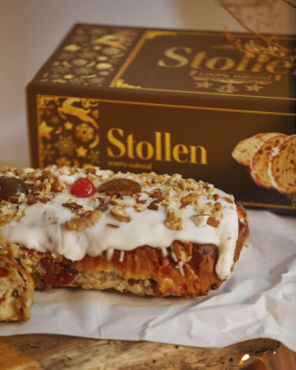 El stollen es un pan dulce de estilo alemán, con frutos secos y frutas abrillantadas, y tiene un valor de $28.250. Pero en Los Pinos también ofrecen otras variedades, como pan dulce con corazón de pastelera o con corazón de dulce de leche bañado en turrón.