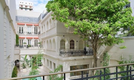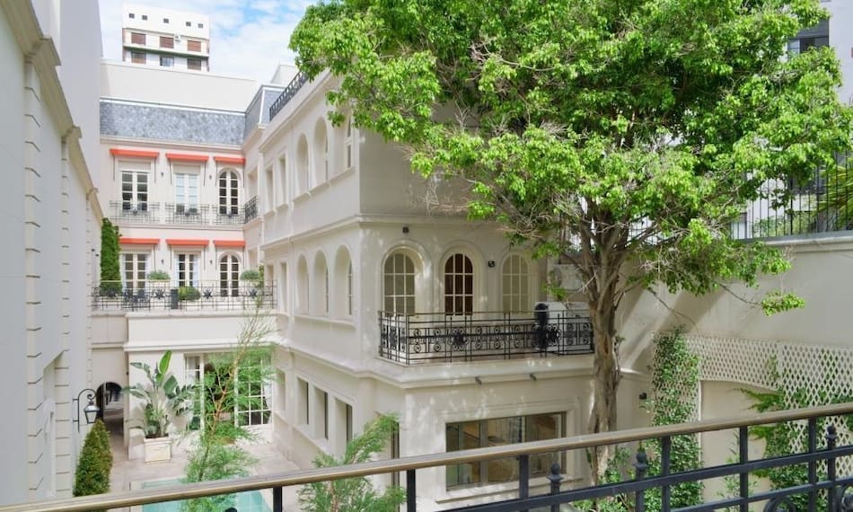 Si bien fue restaurada integralmente, la residencia conserva su rasgo francés: balcones de hierro forjado, boiseries recuperadas, mansarda de pizarra, puertas de nogal italiano y salas con proporciones amplias y ornamentación clásica.