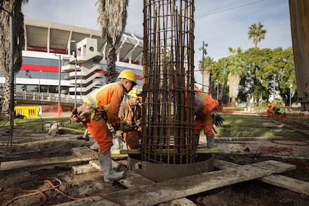 Los equipos técnicos están en la etapa de colocación de pilotes y estructuras de hormigón. Mientras tanto, el ferrocarril San Martín sigue su funcionamiento, aunque de manera articulada.