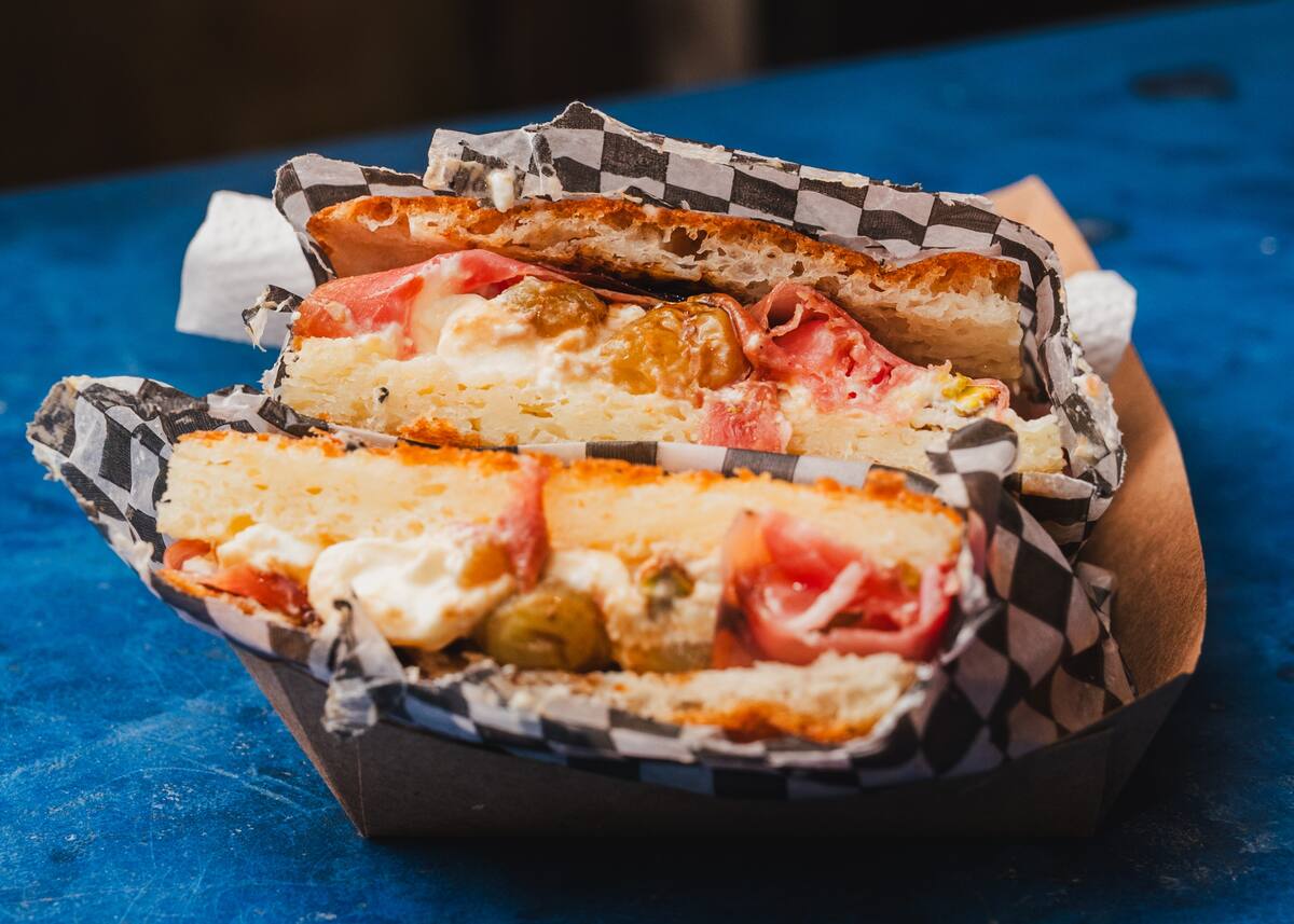 Se destacan la focaccia de burrata con jamón crudo y uvas asadas y pistacho; la de pastrón con pepinos, queso pategras y mostaza, y las pizzas de crudo y stracciatella; o la de mortadela y pesto siciliano.