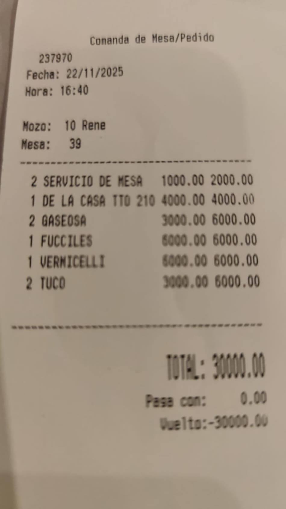 - Vermicellis: $6.000