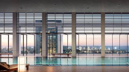 La torre tendrá un lobby de 18 metros de altura y destinará sus primeros cinco niveles a amenities, lo que eleva las residencias desde una altura equivalente a un sexto piso tradicional, garantizando vistas abiertas incluso en las unidades más bajas.