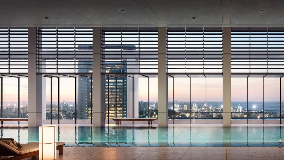 En cuanto a los espacios comunes, suman unos 3000 metros cuadrados distribuidos entre los amenities inferiores y un wellness center previsto para los pisos 19, 20 y 21. La propuesta se completa con una pileta semiolímpica y suites para huéspedes, entre otros servicios orientados al confort y la experiencia premium.