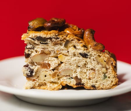 En su interior reúne frutos secos como castañas de cajú, almendras y nueces, higos en almíbar y frutas abrillantadas integradas cuidadosamente para lograr el balance perfecto en cada bocado. Su presentación se completa con un glaseado de jalea y un elegante packaging, en línea con el producto.