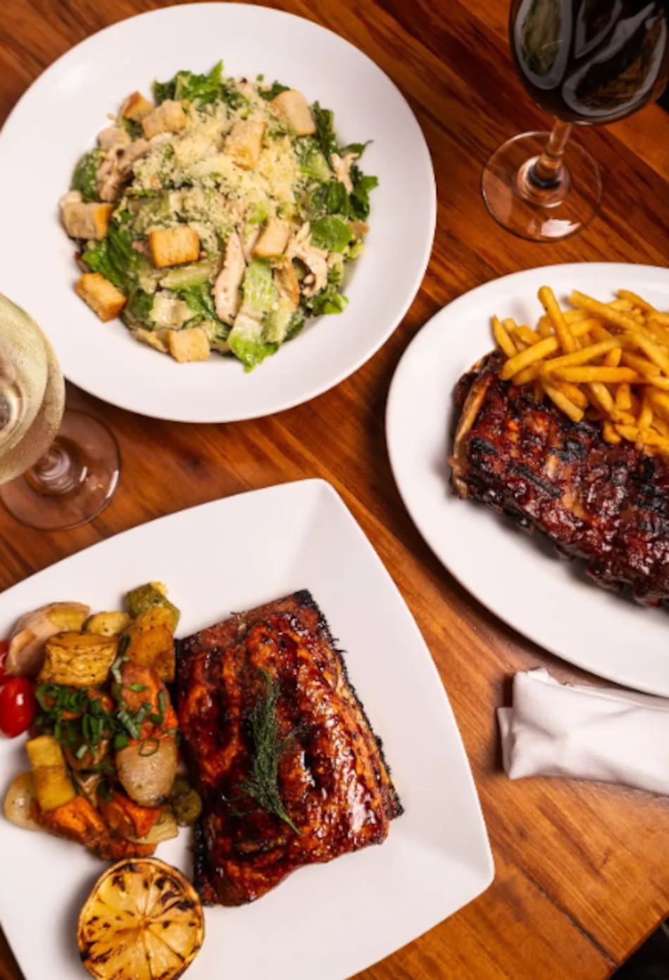 Los principales destacarán clásicos de la casa como Houston’s BBQ Ribs con papas fritas y cole slaw, Cedar Plank Salmon con vegetales rostizados, Montreal Steak con salsa de pimienta negra y puré de papas, Kansas Chicken con papas fritas, Arizona Pasta y Mediterranean Salad.