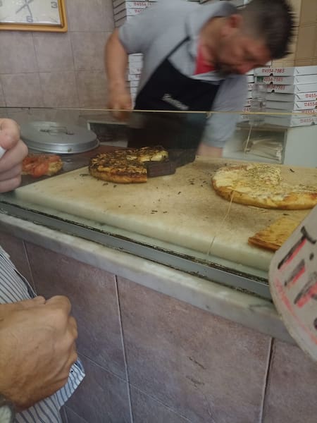 El local es pequeño, para comer al paso, y muchos clientes suelen llevarse la pizza para comerla en su casa.