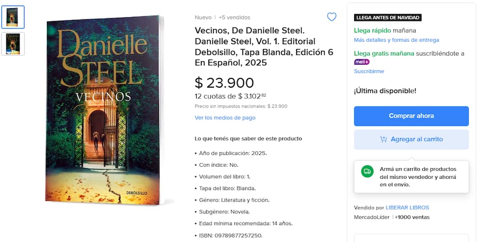 "Vecinos" de Danielle Steel. Foto: Mercado Libre.