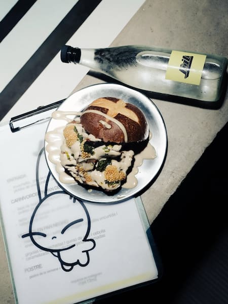La estrategia del chef también incluye la curiosa mascota de Jöl: un conejo blanco con aire de animé que recuerda a su primer animal de compañía, ahora símbolo del bar y protagonista del merchandising del local.